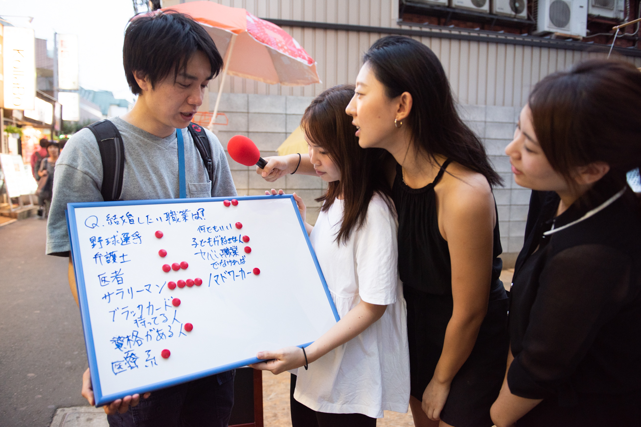 東京の2つの街で、「結婚したい職業」について街頭調査を行います!