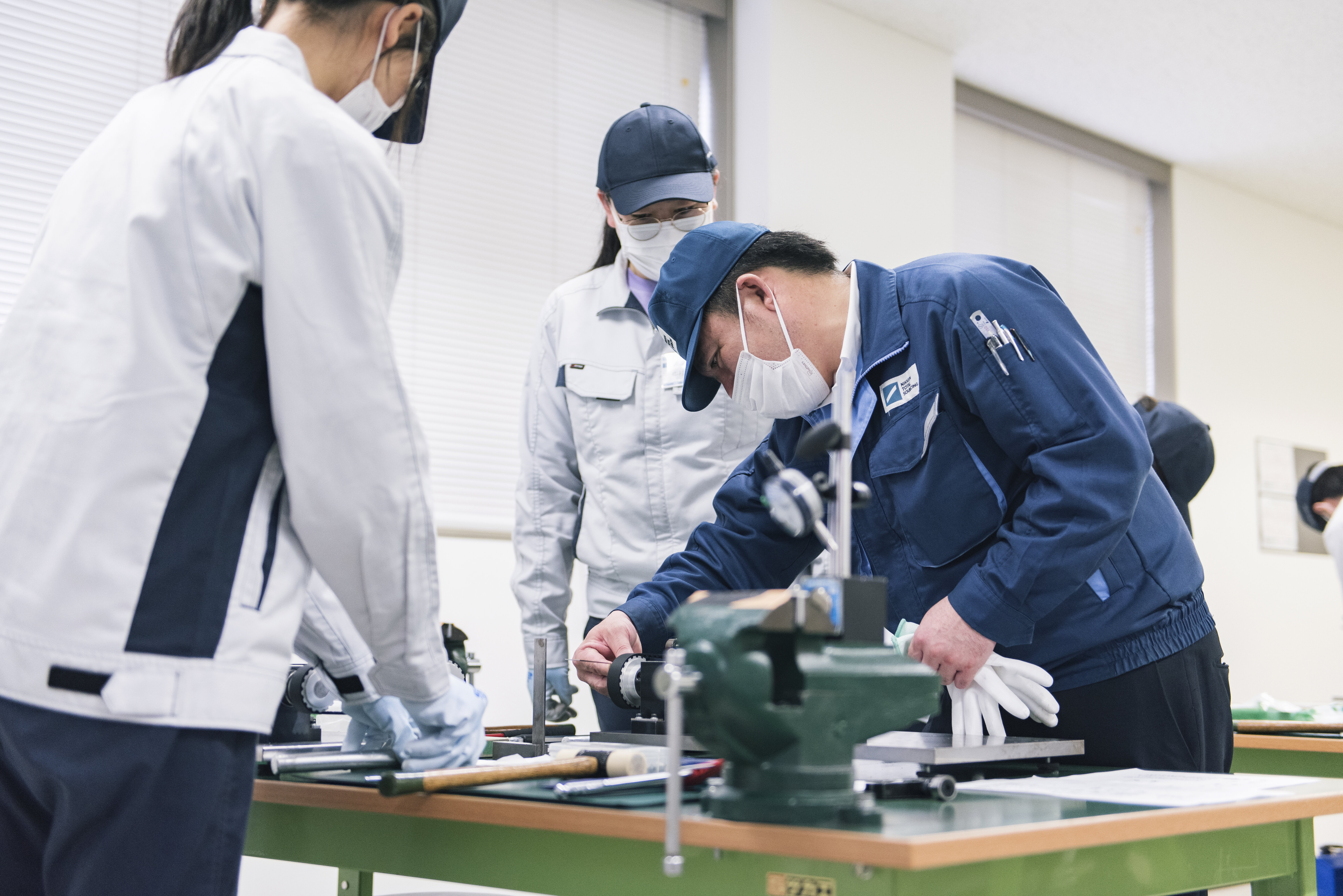 当社の新卒社員に対して実施している、工場や施設で実際に使用されている設備・機器を使用した実技研修と、充実したカリキュラム、メーカー出身の講師陣による座学研修の内容をパネルやパンフレット、映像を通じて紹介します。