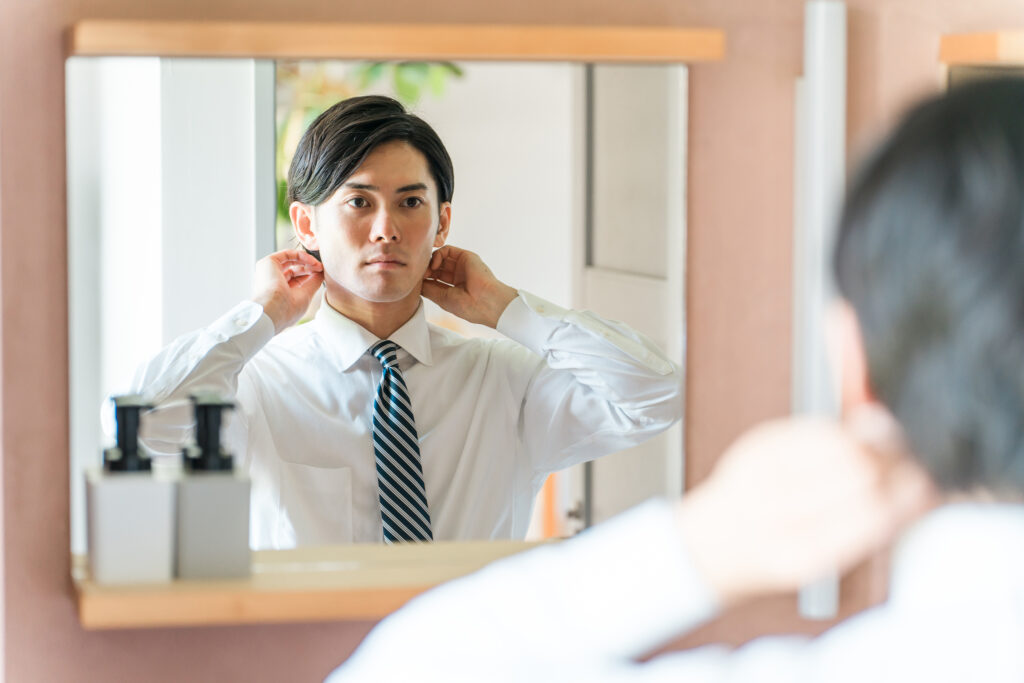 髪が耳にかかっていたり、襟足がスーツの襟に触れるほど伸びていたりすると、少しだらしなく見えてしまうことがあります。定期的に美容院や理髪店でカットし、清潔感のある状態をキープしておきましょう。