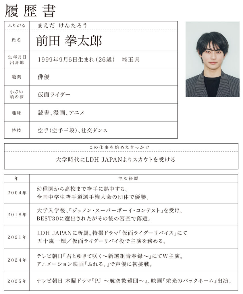 「やりたい仕事が見つからない」「好きなことを仕事にしたいけど、好きなことがわからない」。本記事は、そんな悩める就活生に向けて、自分の「好き」を見つける”スキサガシ”を応援するインタビュー企画!今回登場するのは、俳優の前田拳太郎さんです。『仮面ライダーリバイス』で主役に抜擢されて以降、俳優として芸の幅を広げる一方で、声優などにも挑戦している前田さん。かつては空手で日本一になり、社交ダンスでプロになることを真剣に考えたこともあるそうですが、子ども時代にはやりたいことがなく、一念発起して目指すことにした俳優になる夢も、一度は諦めたことがあるのだとか。そんな前田さんが、再び俳優の道を目指したのはなぜだったのでしょうか。また、夢を掴み取るために意識していたこととは? 前田拳太郎流「好き」の探し方&夢の叶え方に迫ります。