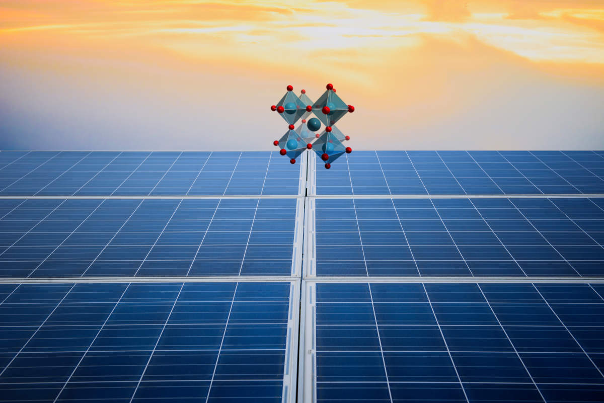 ペロブスカイト太陽電池とは、太陽の光エネルギーを電気に変換する結晶構造を持つ、ペロブスカイトという材料を用いた「ペロブスカイト半導体」を使った太陽電池です。