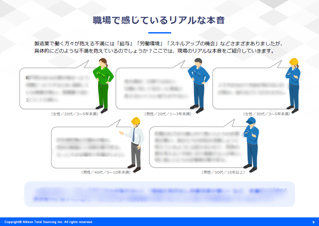 年々深刻化する少子高齢化の影響により、日本の基幹産業である製造業においても、若手人材の減少や従業員の高齢化が進み、慢性的な人手不足が課題となっています。本資料では、製造業が今後も持続的に成長していくために不可欠なテーマである「人材の確保と定着」に焦点を当て、現場で働く方々へのアンケート結果をもとに、その実態や課題を詳しく解説します。
