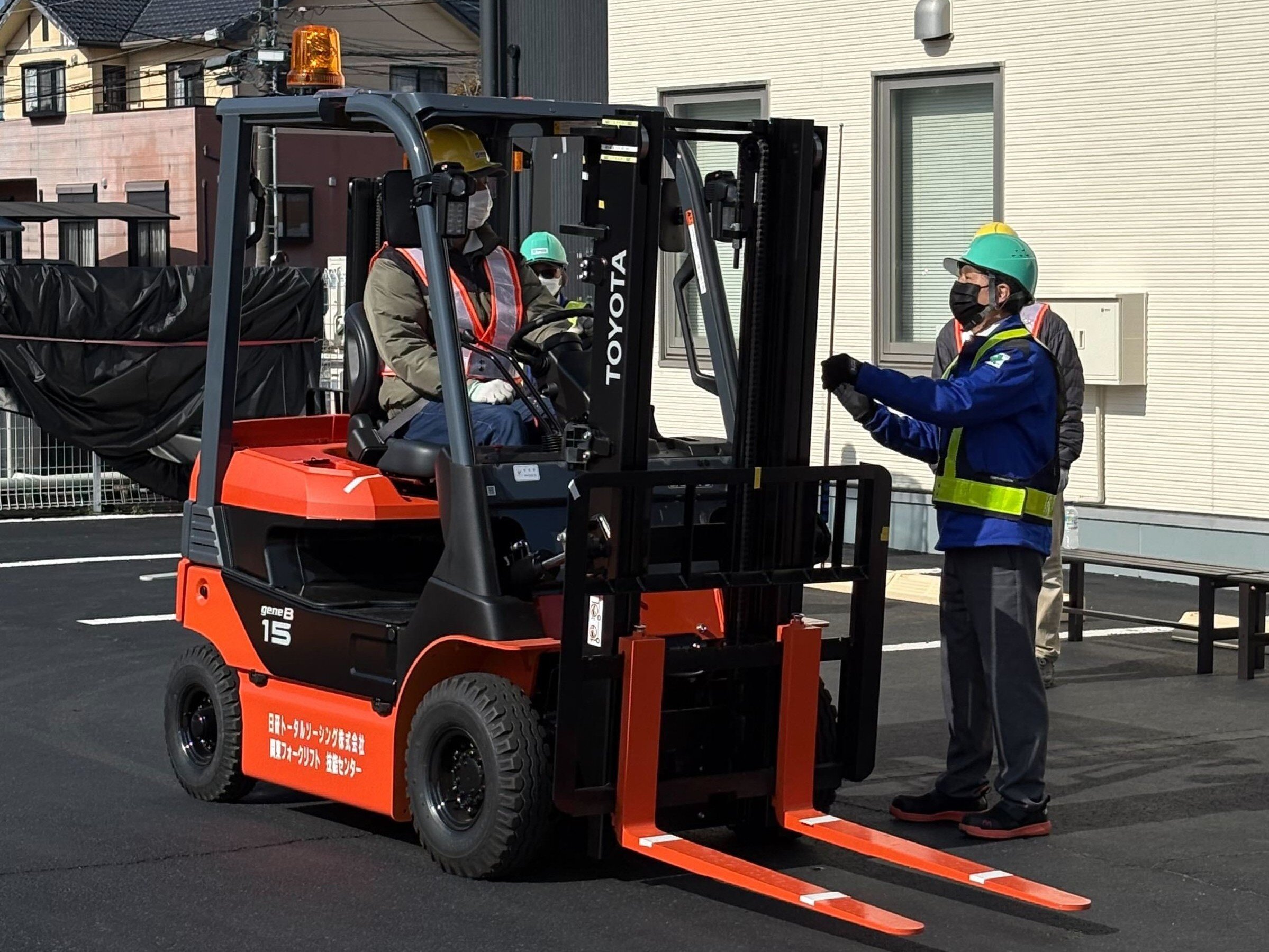 ・現在、製造現場でフィルムの梱包業務に従事していますが、勤務先では入社後数ヶ月での積極的なフォークリフトの資格取得が推奨されており、現場の需要を強く実感しました。そこで、仕事の幅を広げ、キャリアアップを実現するために、今回の講習への参加を決めました。フォークリフトの操作は未経験でしたが、最新設備がそろう充実した環境で、実務に即した操作方法を基礎から安心して学ぶことができています。将来的には「玉掛け」などの関連資格にも挑戦し、さらなるスキルアップを通じて、着実にキャリアを築いていきたいと考えています。