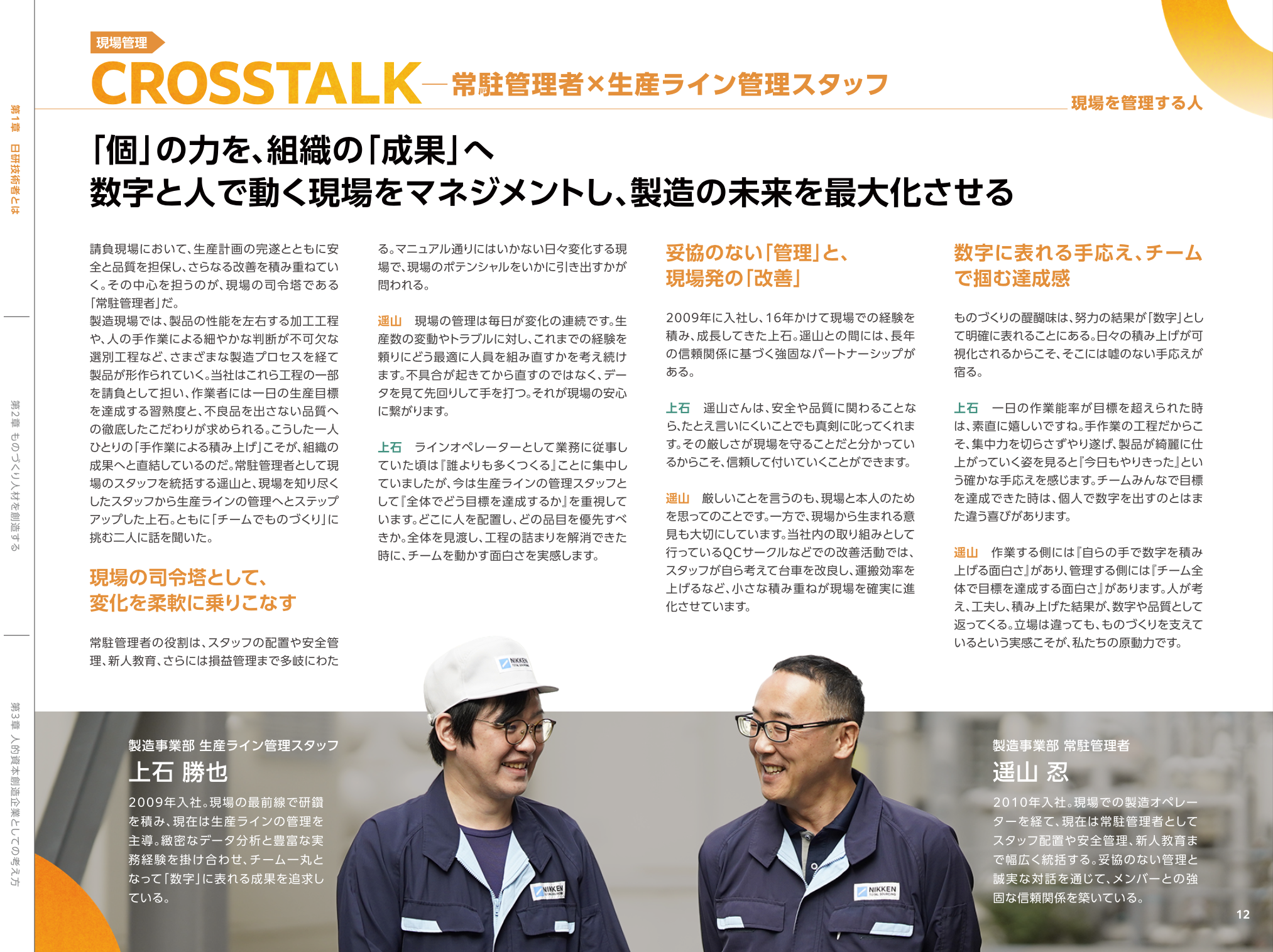 本レポートでは、製造業において当社がどのような役割を担っているかを役員インタビューとともに紹介。さらに「ものを開発・設計する人」「ものを生産する人」「生産設備を守る人」「現場を管理する人(常駐管理者)」の4つの視点から、現場で活躍するスタッフやそれを支えるワークライフ・サポーターのインタビューを通じて、リアルな現場の声をお届けします。また、各領域に対応するエンジニア研修センター、ものづくり技能センター、保全テクノセンターについて、就業前研修や専門研修などの研修カリキュラムをはじめ、当社独自の研修への取り組みを紹介しています。