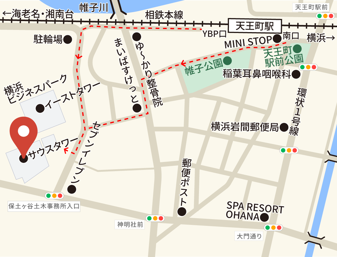 直進し、信号を2つほど越えた先に「トヨタレンタカー」があります。その隣のガラス張りの「ONEST大宮吉敷町ビル」の6階です。